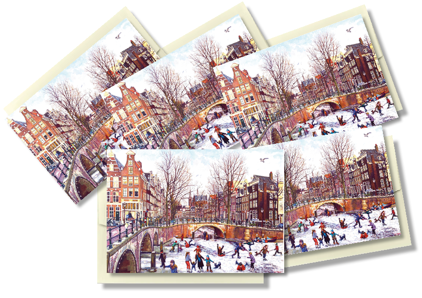 Set van 5 kaarten met luxe envelop | Schaatsen op de Keizersgracht