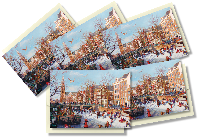 Set van 5 kaarten met luxe envelop | Schaatsen op de Prinsengracht