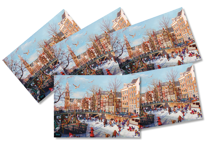 Set van 5 losse kaarten | Schaatsen op de Prinsengracht